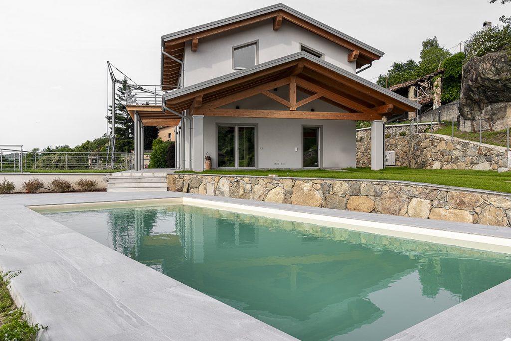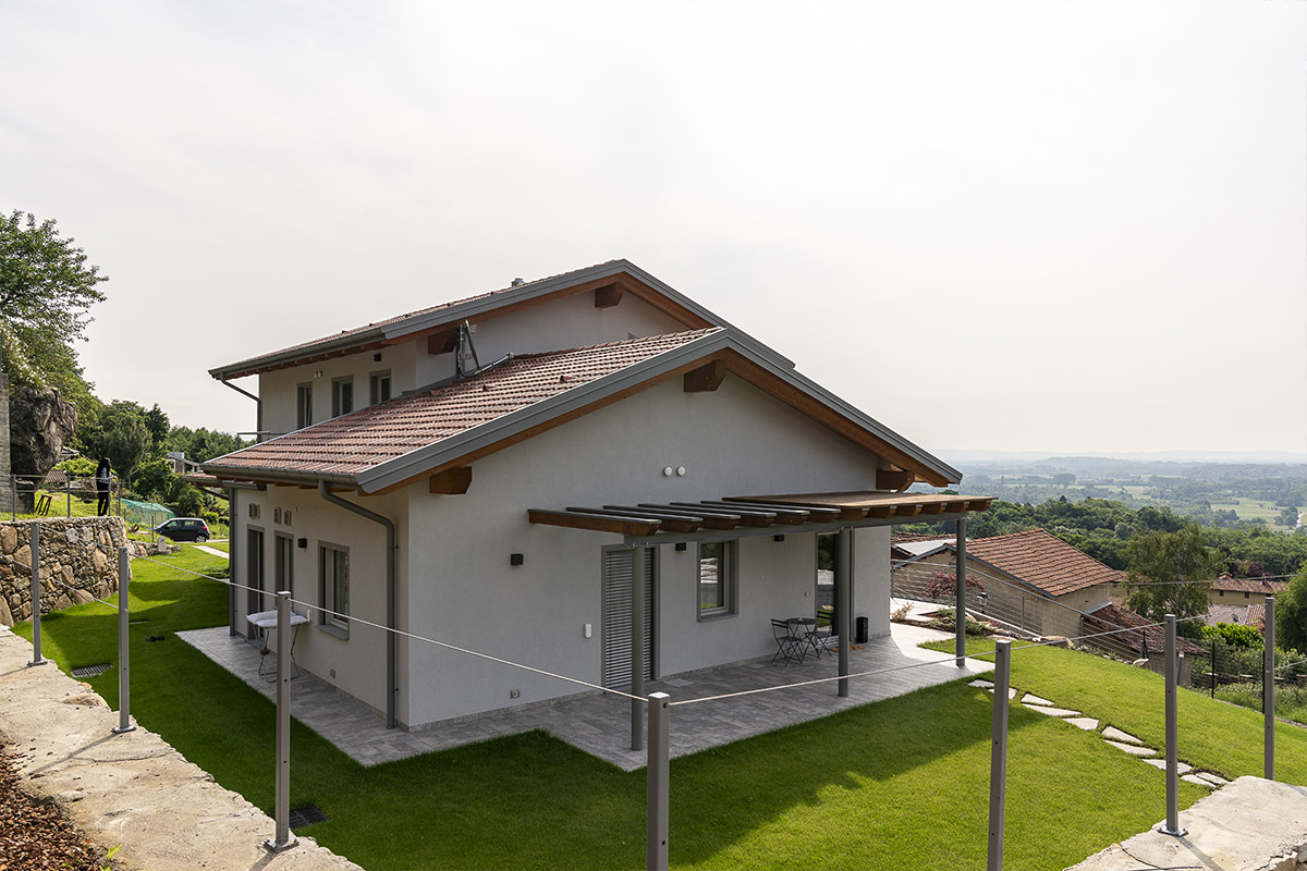 L’edificio, costruito seguendo il declivio naturale del lotto, ospita locali di pertinenza e abitazioni su due unità di diversa dimensione, ciascuna dotata di ventilazione meccanica bilanciata. Il sistema di climatizzazione invernale ed estivo è centralizzato, mentre la produzione di acqua calda sanitaria è autonoma per ciascuna unità tramite boiler a pompa di calore.