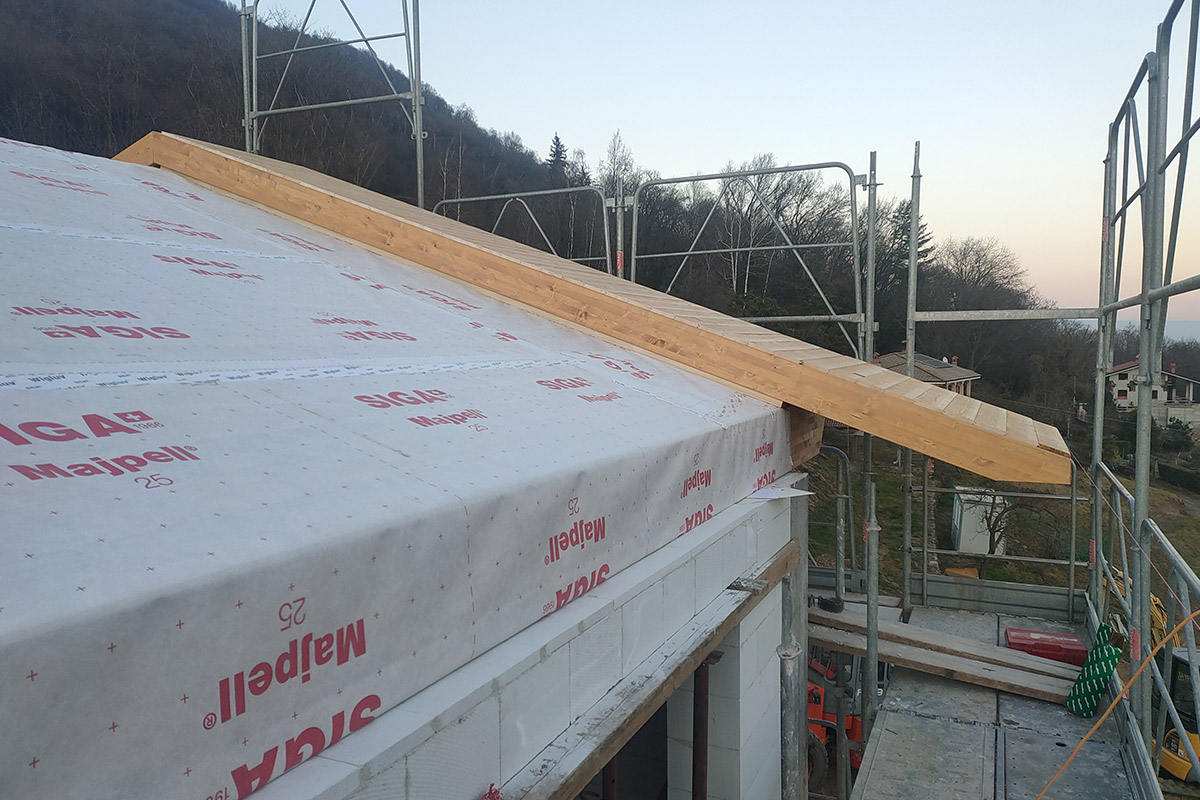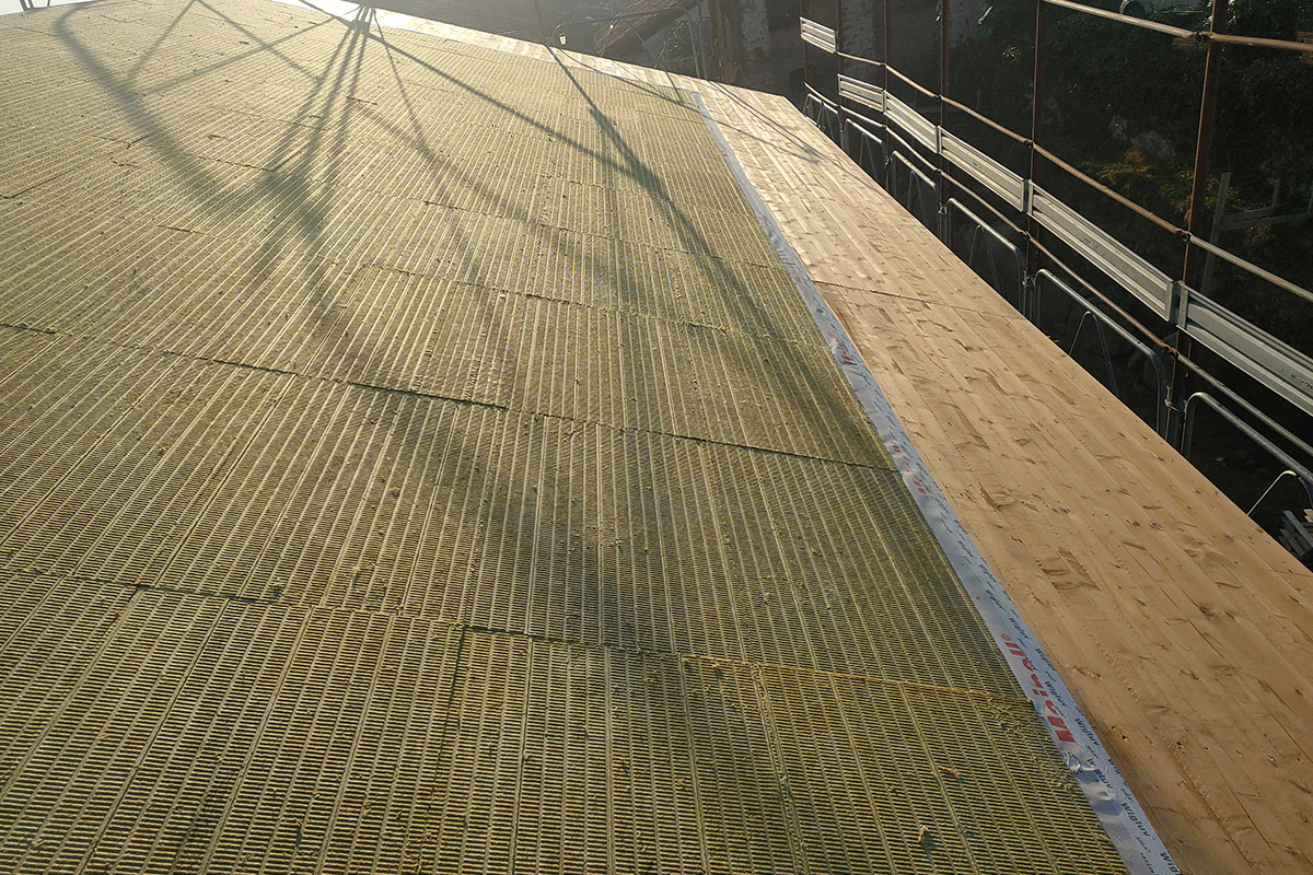 • Tetto a vista in legno con coibentazione in lana di roccia ad alta densità