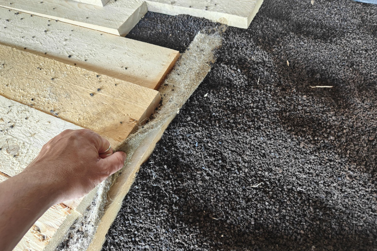 - Fibra di legno e fiocchi di cellulosa per coibentazione tetto