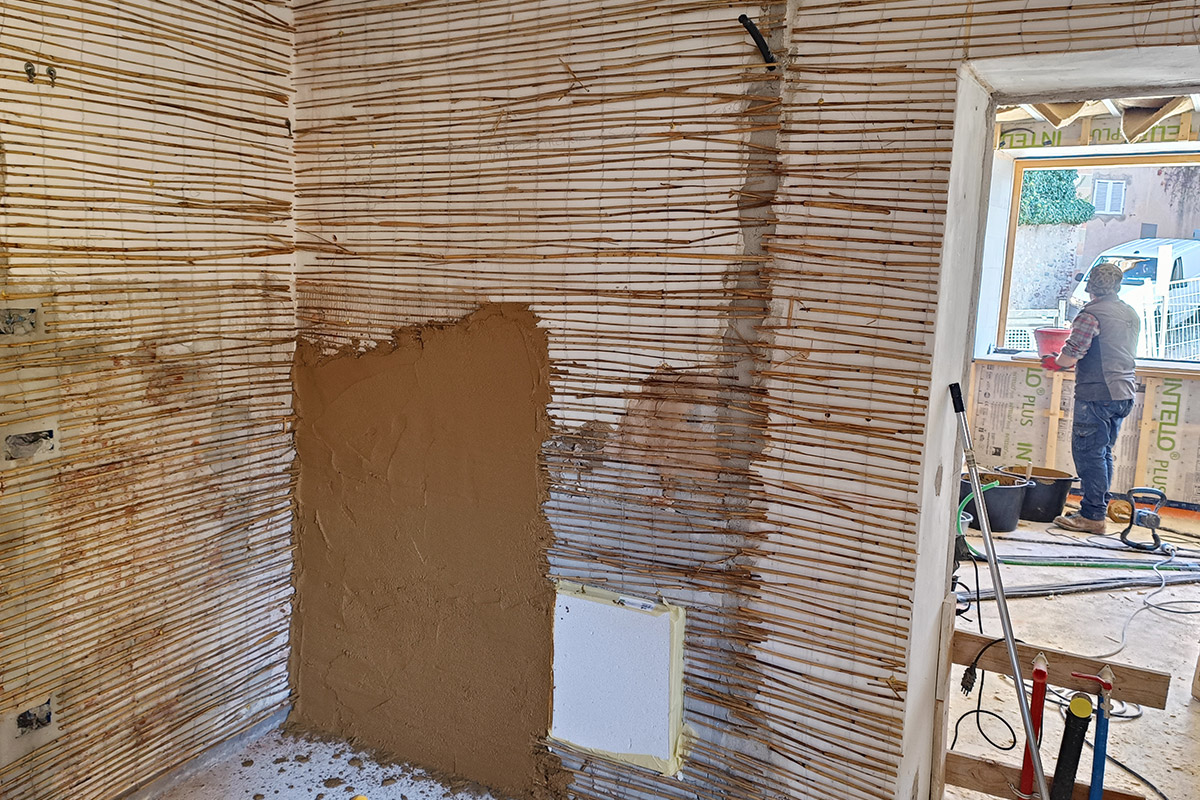 I materiali utilizzati comprendono pannelli in fibra di canapa e silicati di calcio per la coibentazione interna, sottofondi a secco in granulato di legno mineralizzato, sottofondi a umido in calce e canapulo, intonaci in argilla, calce e canapulo e pavimenti in legno o superfici continue di argilla e calce.